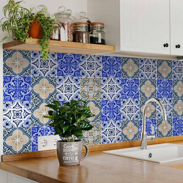 Blue, Yellow and Brown H402 7 in. x 7 in. Vinyl Peel and Stick Tile (24-Tiles, 8.17 sq. ft. / Pack)