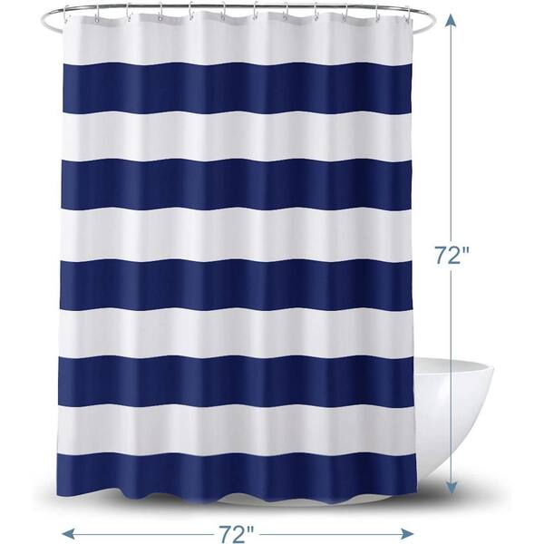 Blue and White Stripes 72 in. W x 72 in. L Fabric Shower Curtain in Navy PVC