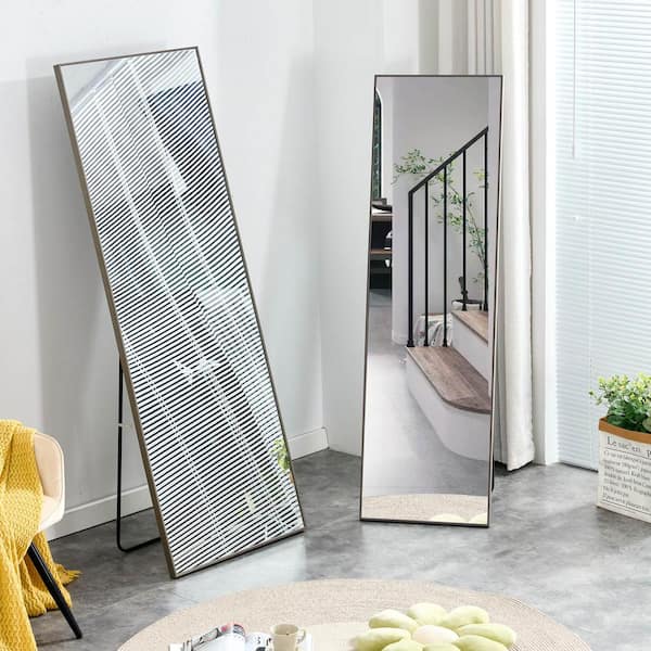 23 in. W x 65 in. H Rectangular Wooden Framed Freestanding/Wall Mounted Bathroom Vanity Mirror in Gray
