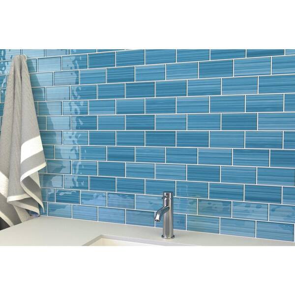 Hand Painted Sample 3 in. x 6 in. Astoria Blue 60 glass tile (0.125 sq. ft./1 Each)