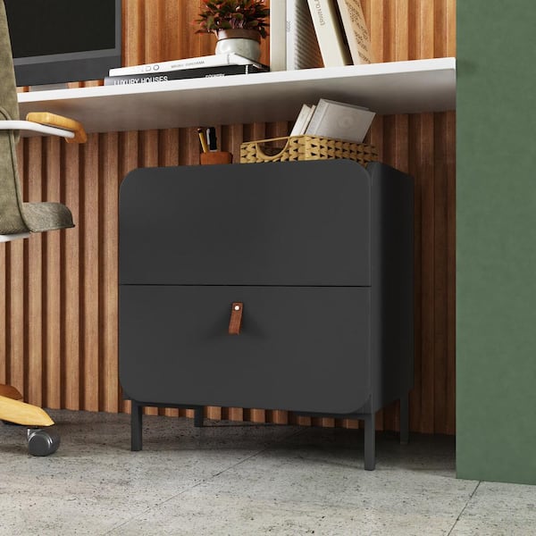 Bogardus Black Mid-Century Modern 2-Drawer 19.68 in. W Nightstand