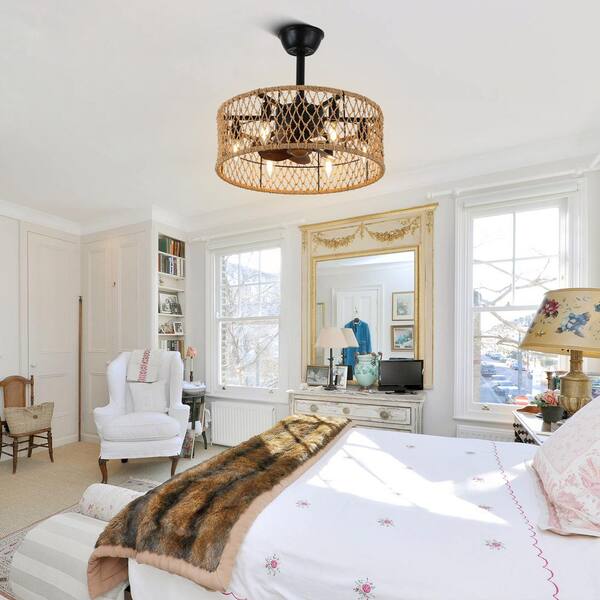 Bohemian 18 in. Indoor Brown Rattan Rope Ceiling Fan with LED Lights and Remote