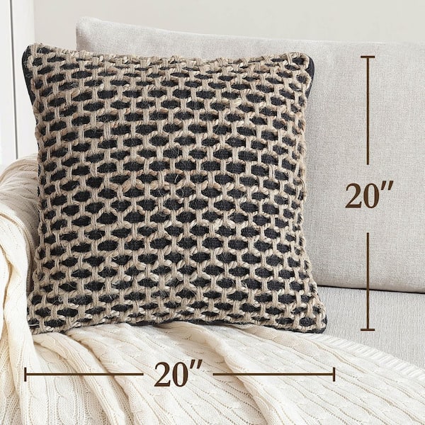Jada Black Geometric 20 in. x 20 in. Braided Jute Decorative Throw Pillow (Set of 2)