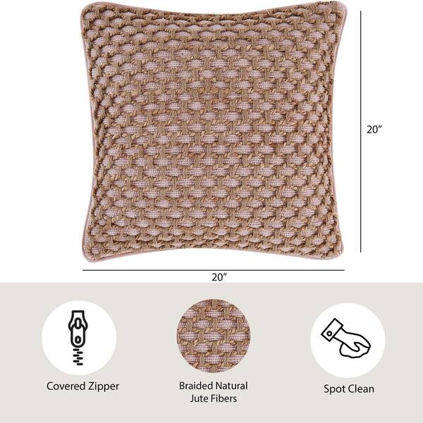 Jada Geometric Blush 20 in. x 20 in. Braided Jute Decorative Throw Pillow