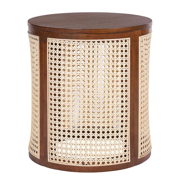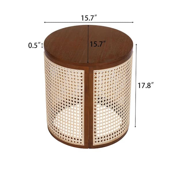 Boho Rattan Side Table with Storage, 15.7" Round End Table Woven Rattan Design, 17.8" Tall Accent Table