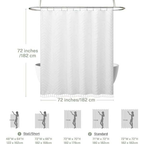 Boho Shower Curtain 72 x 72 Woven with Tassels Modern Farmhouse Textured Tufted Chevron Minimalist Fabric in White