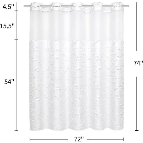 Boho White Woven Fabric Shower Curtain 72 x 74 Modern Farmhouse Tufted Chevron Striped Shabby Chic Textured Bathroom