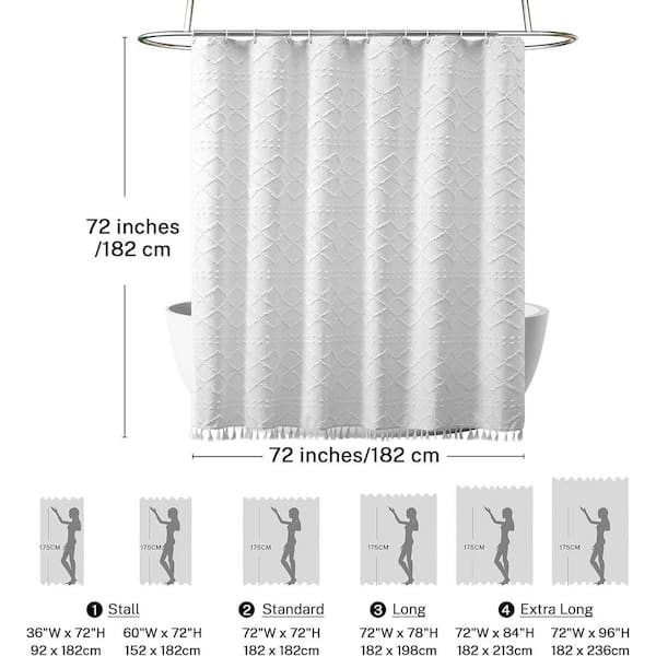 Boho White Woven Fabric Shower Curtain with Tassel 72 x 72 Modern Farmhouse Minimalist Textured Chevron Striped PVC