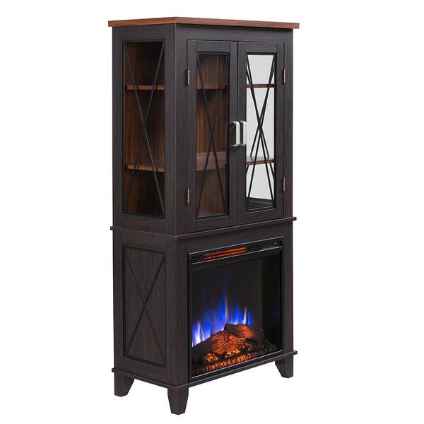 Bold Flame Concord 30 in. Display Cabinet Electric Fireplace in black with Walnut accents