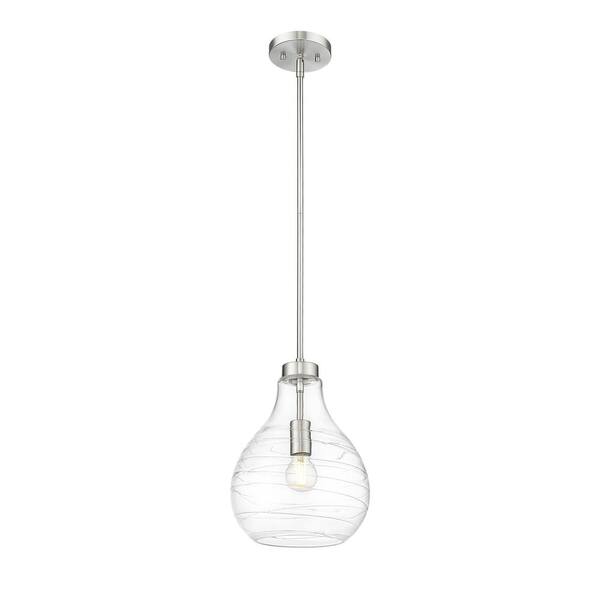 Bon Air 100-Watt 10 in. 1-Light Brushed Nickel Shaded Pendant Light with Clear Glass Shade, No Bulbs Included