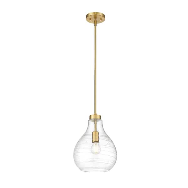 Bon Air 100-Watt 10 in. 1-Light Modern Gold Shaded Pendant Light with Clear Glass Shade, No Bulbs Included