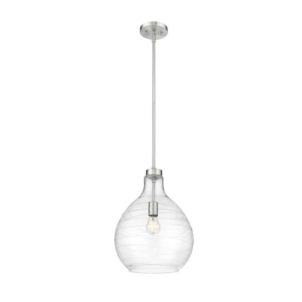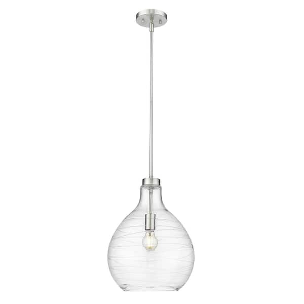 Bon Air 100-Watt 13 in. 1-Light Brushed Nickel Shaded Pendant Light with Clear Glass Shade, No Bulbs Included