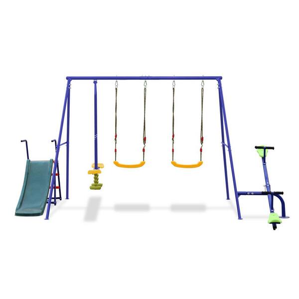 5 in 1 Metal Multicolor Outdoor Swing Playset with Glider