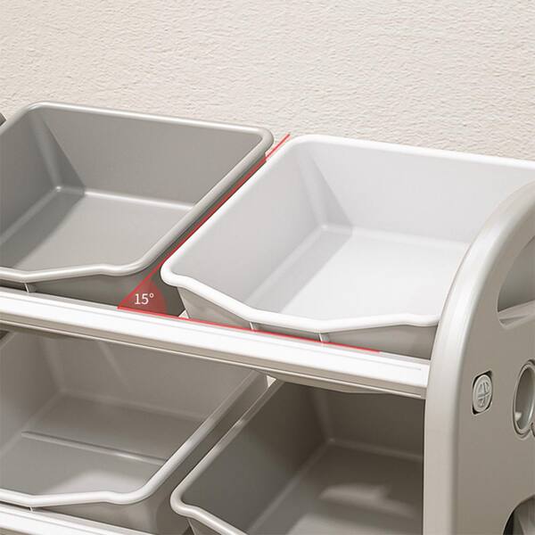 Gray Multi-functional Kids Toy Storage Cabinet with HDPE Shelf and 6 Bins