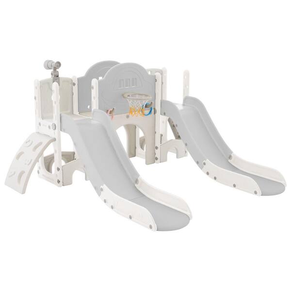Grey and White HDPE Indoor and Outdoor Playset Small Kid with Telescope, Slide and Basketball Hoop