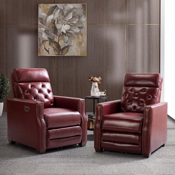 Bona 31.50"Wide Burgundy Genuine Leather Power Recliner with USB Port (Set of 2)