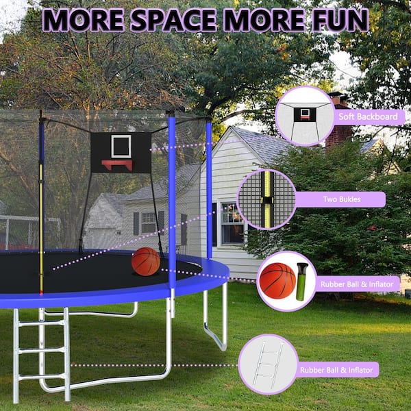 14 ft. Blue Galvanized Anti-Rust Outdoor Trampoline with Basketball Hoop and Ladder