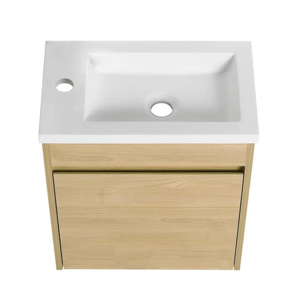 17.30 in. W x 10.20 in. D x 19.90 in. H Single Sink Wall Mounted Bath Vanity in Light Teak with White Resin Top