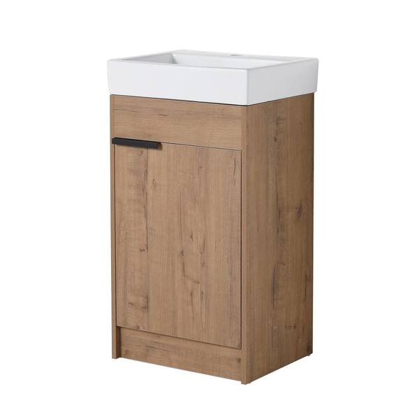 18.98 in. W x 14.96 in. D x 34.57 in. H Single Sink Freestanding Bath Vanity in Imitative Oak with White Ceramic Top