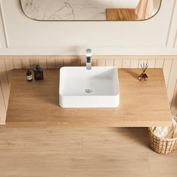 20 in. Vessel Rectangular Bathroom Sink in Matte White