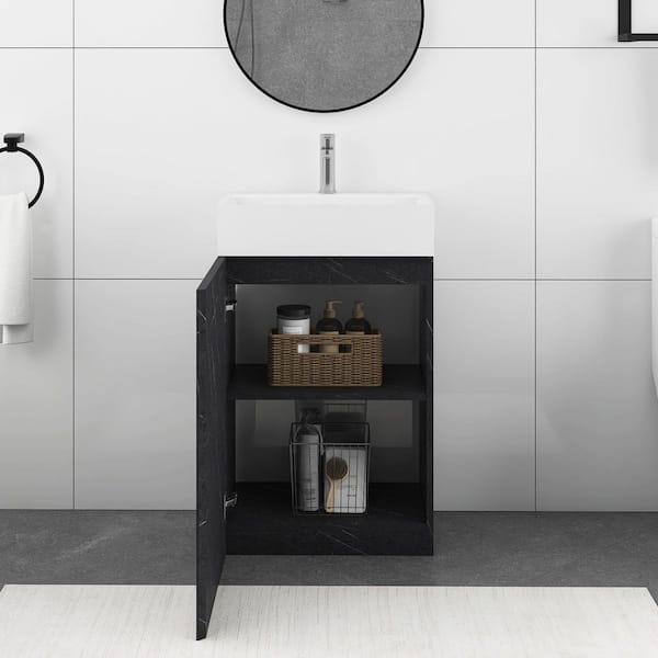 20 in. W x 14 in. D x 33 in. H Single Sink Freestanding Bath Vanity in Black with White Ceramic Top