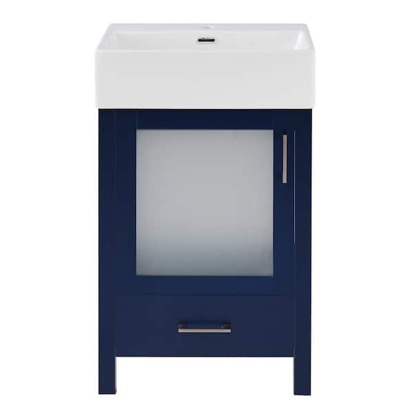 20 in. W x 15 in. D x 35 in. H Single Sink Freestanding Bath Vanity in Blue with White Ceramic Top