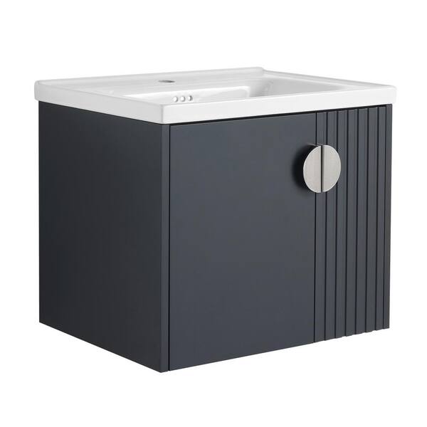 23.80 in. W 18.50 in. D 20.69 in. H Single Sink Wall MountedBath Vanity in Black with White Ceramic Top