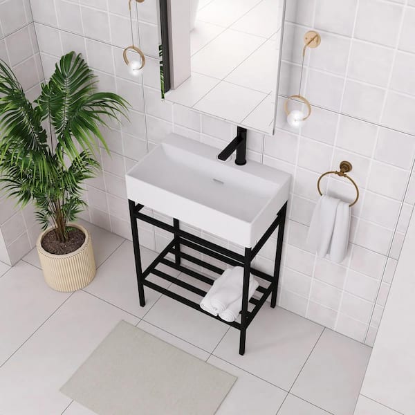 24 in. W x 14 in. D x 33 in. H Single Sink Freestanding Bath Vanity in Black with White Ceramic Top