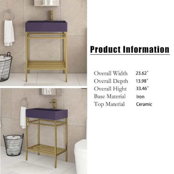 24 in. W x 14 in. D x 34 in. H Single Sink Freestanding Bath Vanity in Gold with Purple Ceramic Top