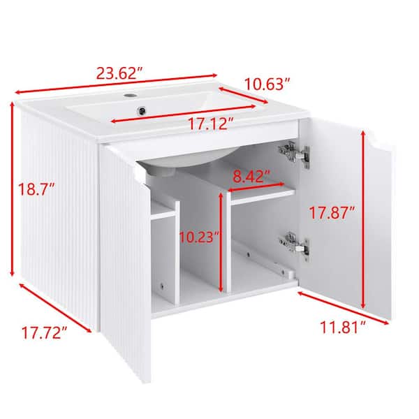 24 in. W x 18 in. D x 19 in. H Single Sink Floating Bath Vanity in White with White Ceramic Top