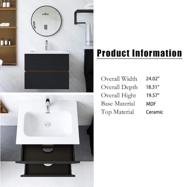 24 in. W x 18 in. D x 20 in. H Single Sink Wall Mounted Bath Vanity in Brown with White Ceramic Top