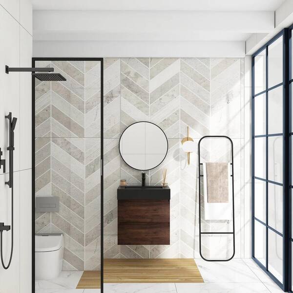 24 in. W x 18 in. D x 25 in. H Single Sink Floating Bath Vanity in Walnut with Matt Black Solid Surface Top