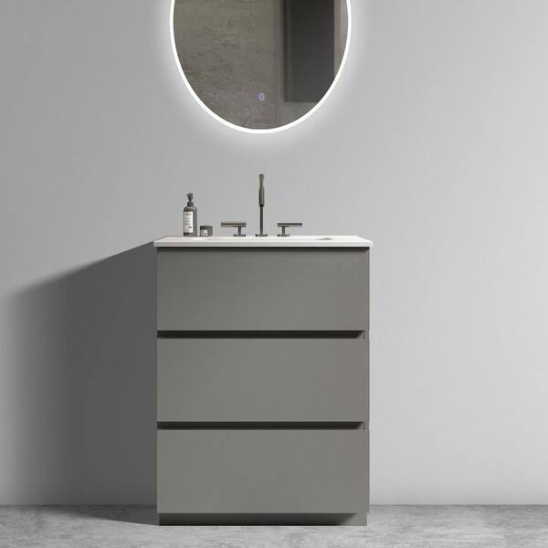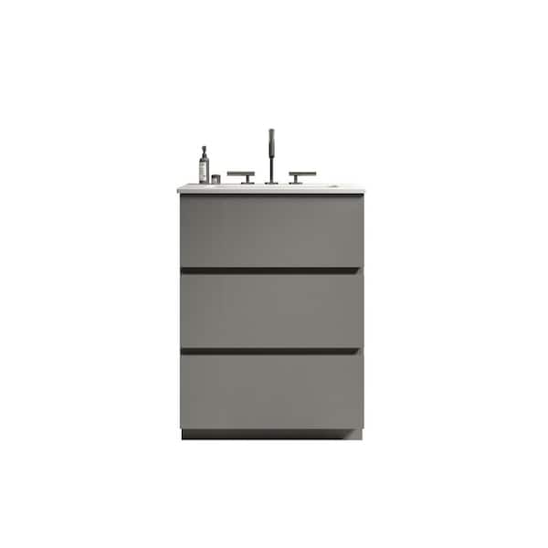 24 in. W x 18 in. D x 33 in. H Single Sink Freestanding Bath Vanity in Gray with White Engineered Stone Composite Top