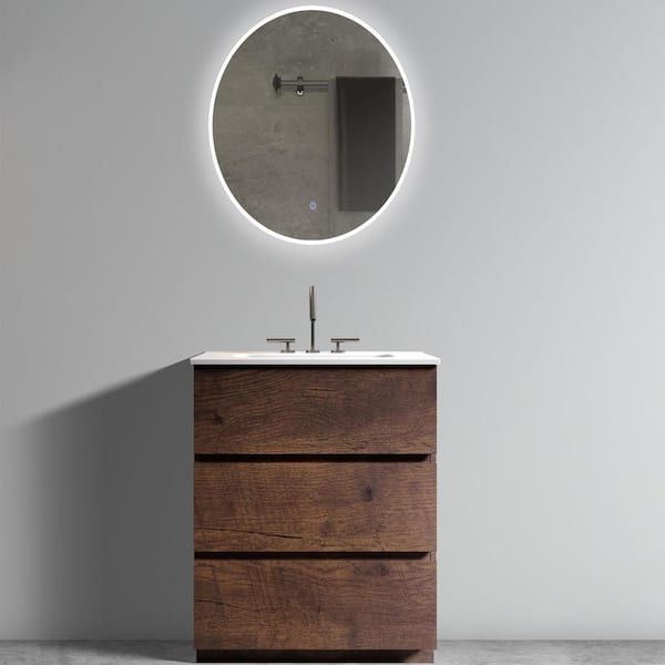 24 in. W x 18 in. D x 33 in. H Single Sink Freestanding Bath Vanity in Walnut with White Engineered Stone Composite Top