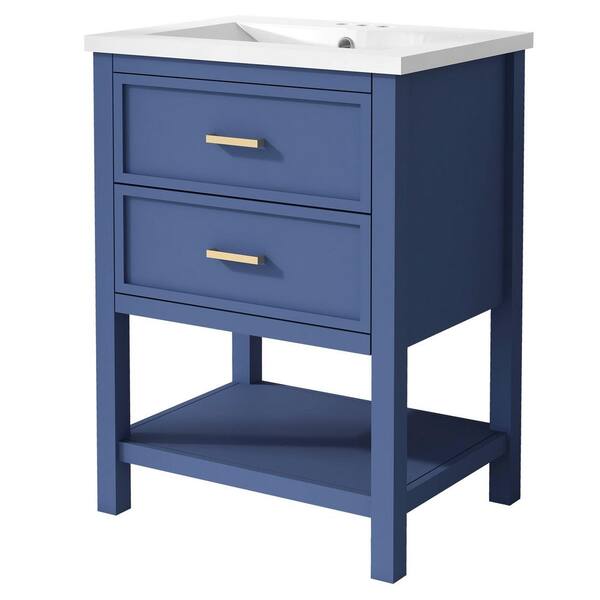 24 in. W x 18 in. D x 34 in. H Freestanding Bath Vanity in Blue with White Ceramic Top