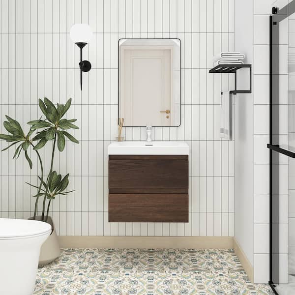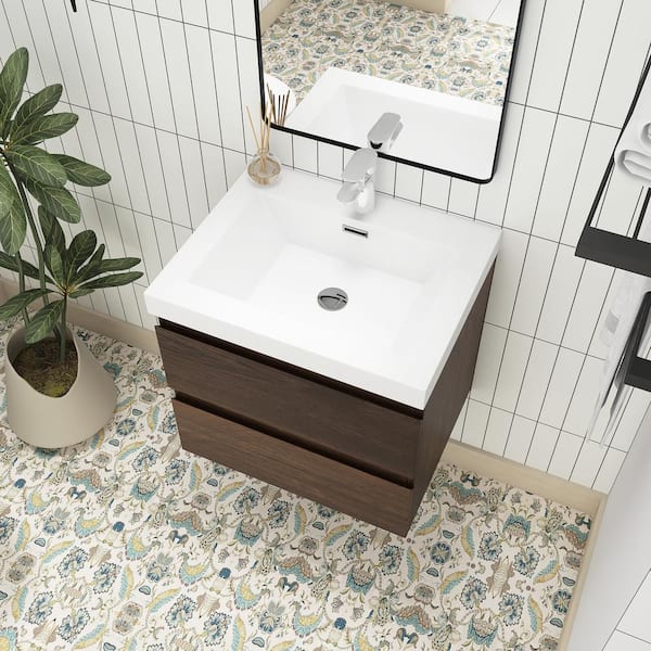 24 in. W x 19.5 in. D x 20.5 in. H Single Sink Wall-Mounted Bath Vanity in Roes Wood with White Resin Top