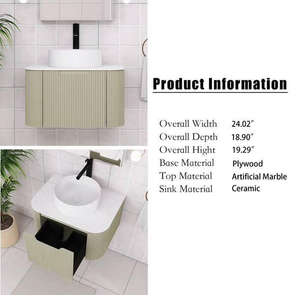 24 in. W x 19 in. D x 19 in. H Single Sink Wall-Mounted Bath Vanity in Light Green with White Engineered Marble Top