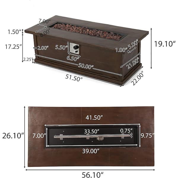 26 in. W x 19 in. H Rectangular MgO Gas Burning Propane Outdoor Fire Pit in Brown