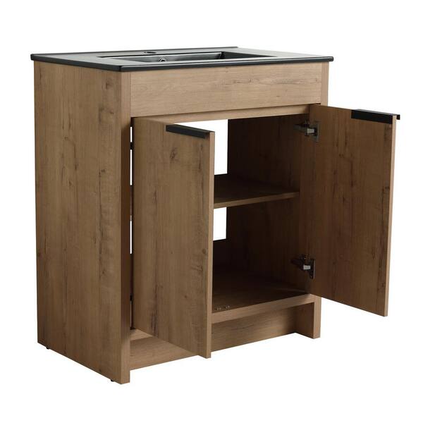 29.13 in. W x 17.91 in. D x 33.46 in. H Single Sink Freestanding Bath Vanity in Imitative Oak with Black Ceramic Top
