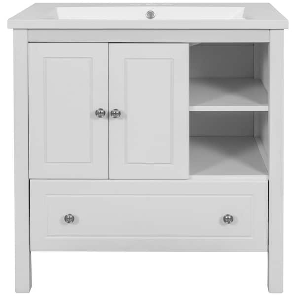 29.8 in. W x 18 in. D x 32 in. H Single Sink Freestanding Bath Vanity in White with White Ceramic Top