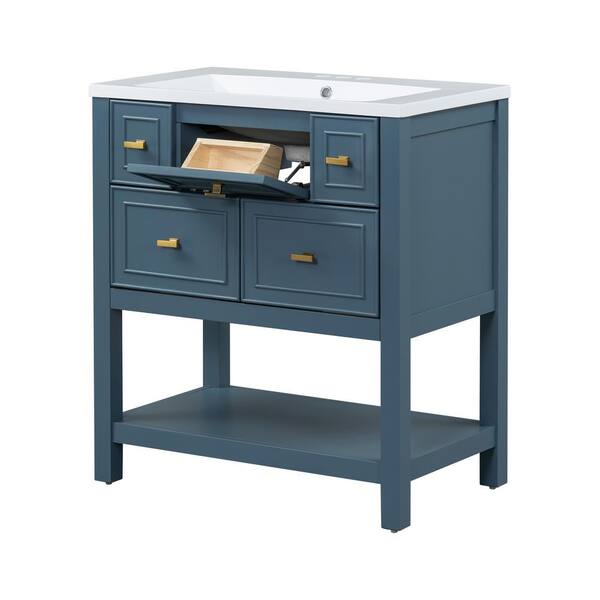 30 in. W Single Sink Freestanding Bath Vanity in Blue with White Ceramic Top