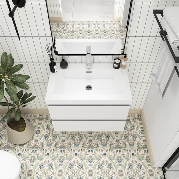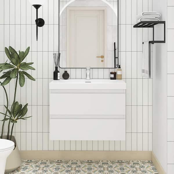 30 in. W X 19.5 in. D x 22.5 in. H Single Sink Wall-Mounted Bath Vanity in White with White Resin Top
