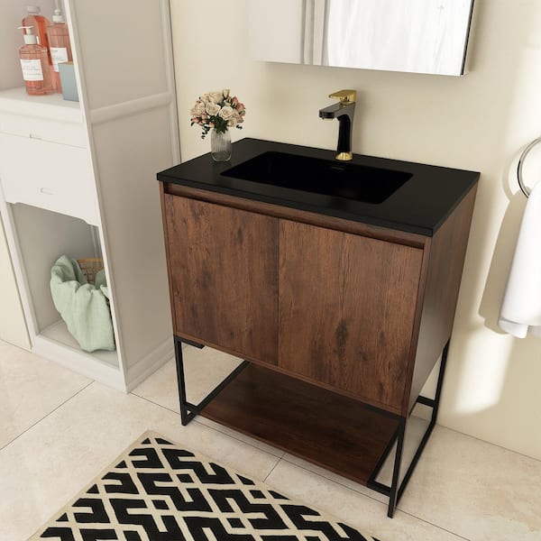 30 in. W X 19 in. D X 34 in. H Single Sink Freestanding Bath Vanity in Rose Wood With Black Resin Top