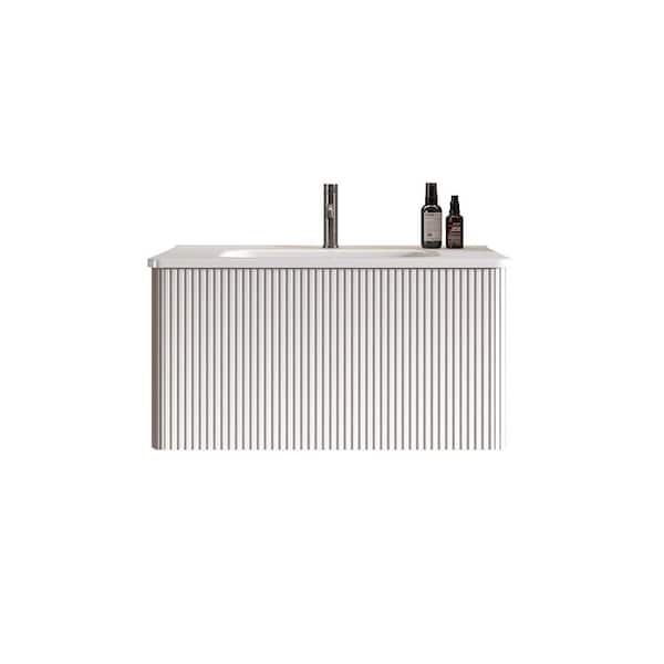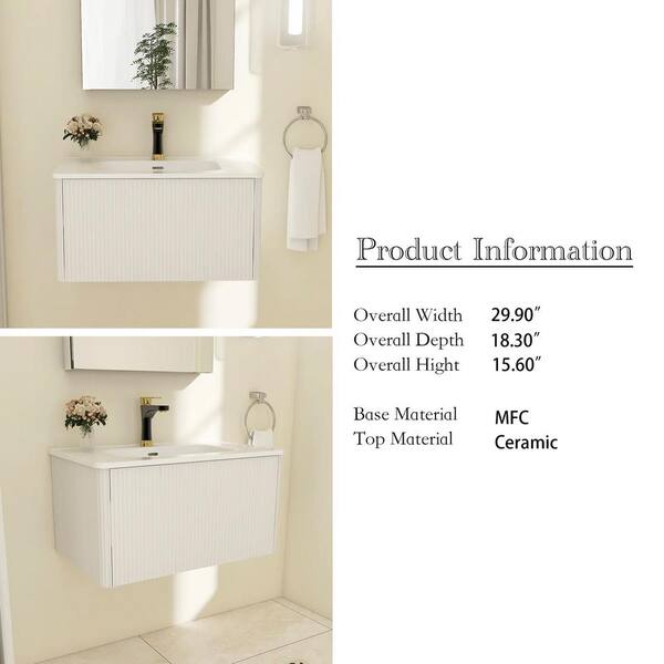 30 in. W x 18.3 in. D x 15.6 in. H Single Sink Wall-Mounted Bath Vanity in White with White Ceramic Top