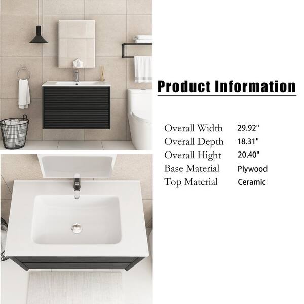 30 in. W x 18 in. D x 20 in. H Single Sink Wall-Mounted Bath Vanity in Dark Oak with White Ceramic Top
