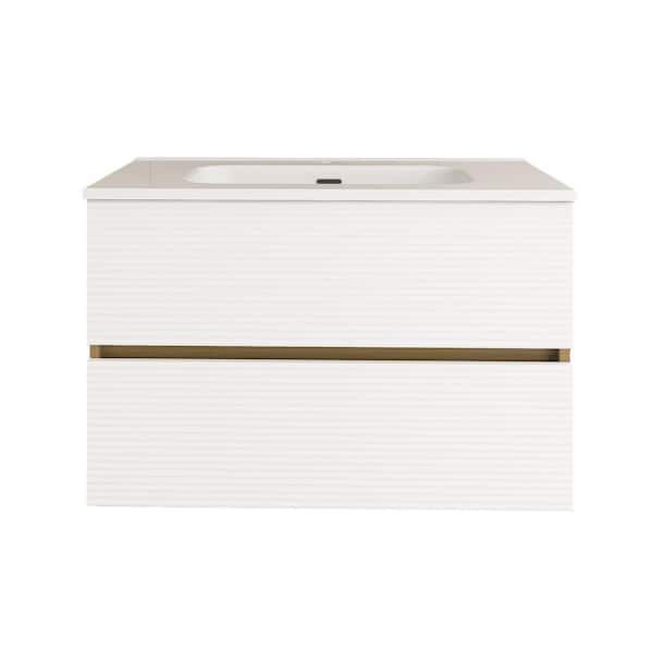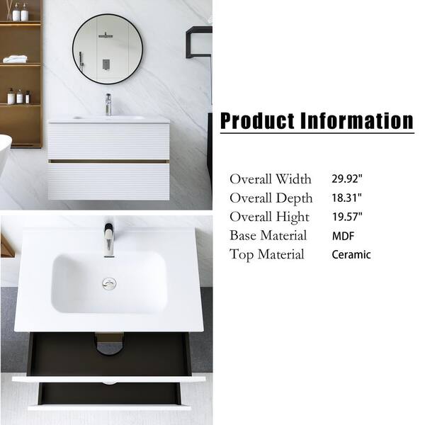 30 in. W x 18 in. D x 20 in. H Single Sink Wall Mounted Bath Vanity in Light Oak with White Ceramic Top
