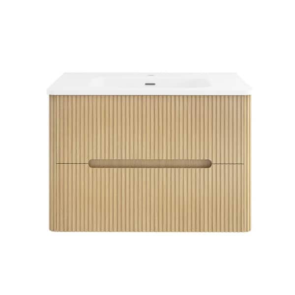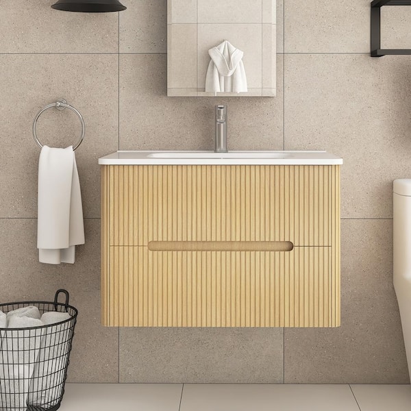 30 in. W x 18 in. D x 20 in. H Single Sink Wall-Mounted Bath Vanity in Light Oak with White Ceramic Top