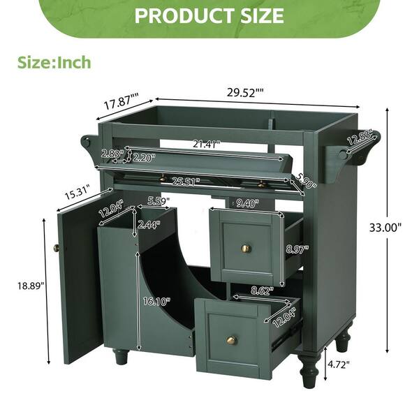 30 in. W x 18 in. D x 33 in. H Bath Vanity Cabinet without Top in Green