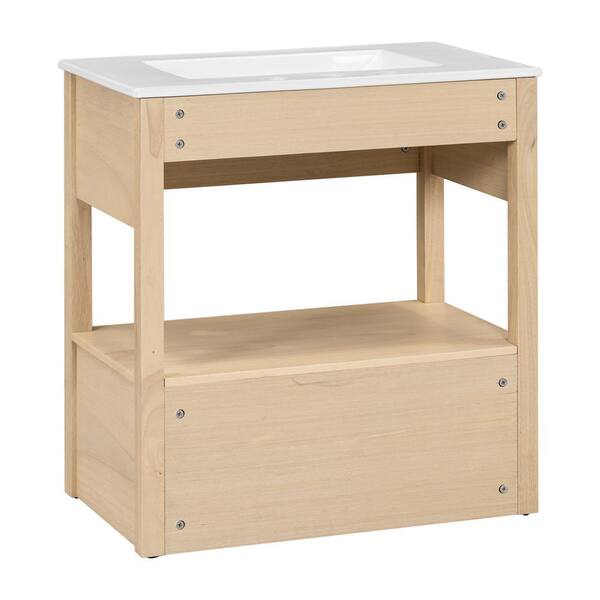 30 in. W x 18 in. D x 33 in. H Single Sink Freestanding Bath Vanity in Natural with White Ceramic Top