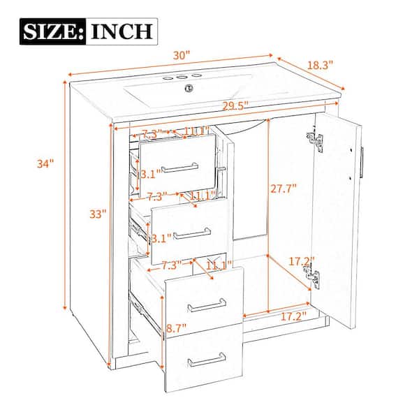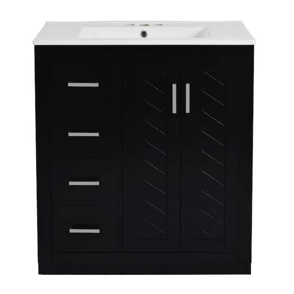 30 in. W x 18 in. D x 34 in. H Single Sink Freestanding Bath Vanity in Black with White Ceramic Top